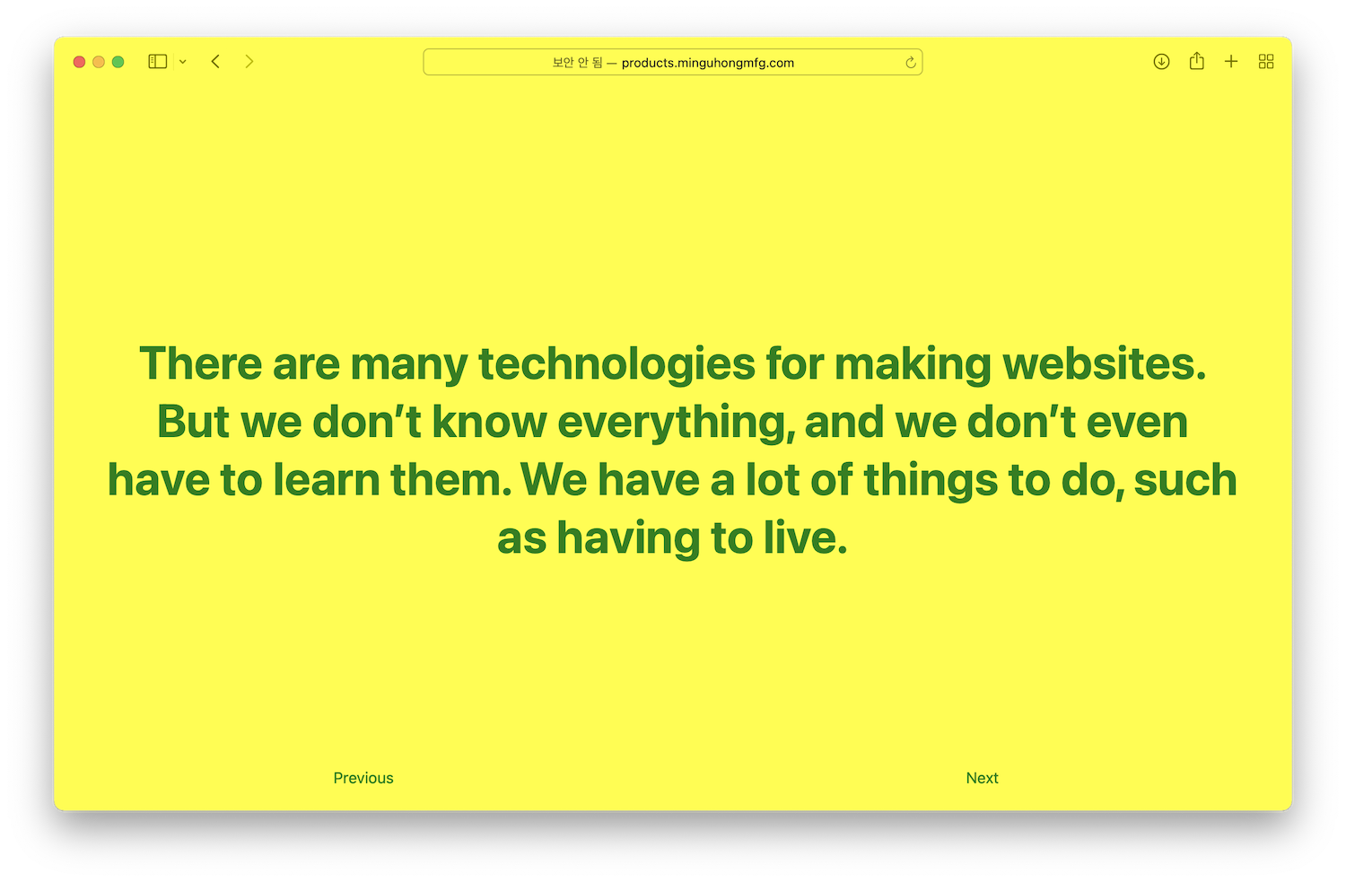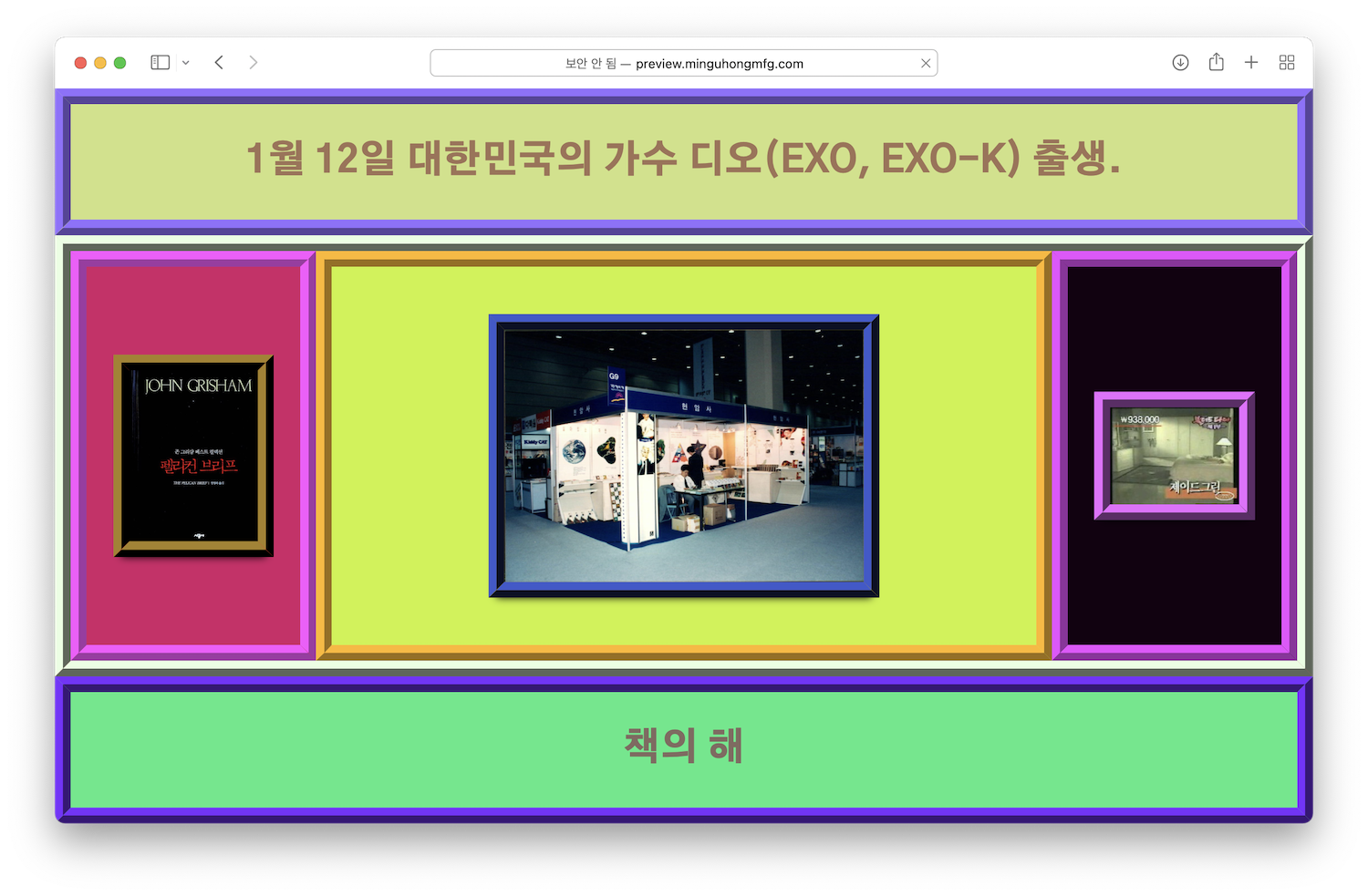 새로운 질서 웹사이트를 포함해 민구홍 매뉴팩처링의 기술을 거친 크고 작은 웹사이트들 또한 결국 콘텐츠에 새로운 질서를 부여한 사랑의 결과물입니다.